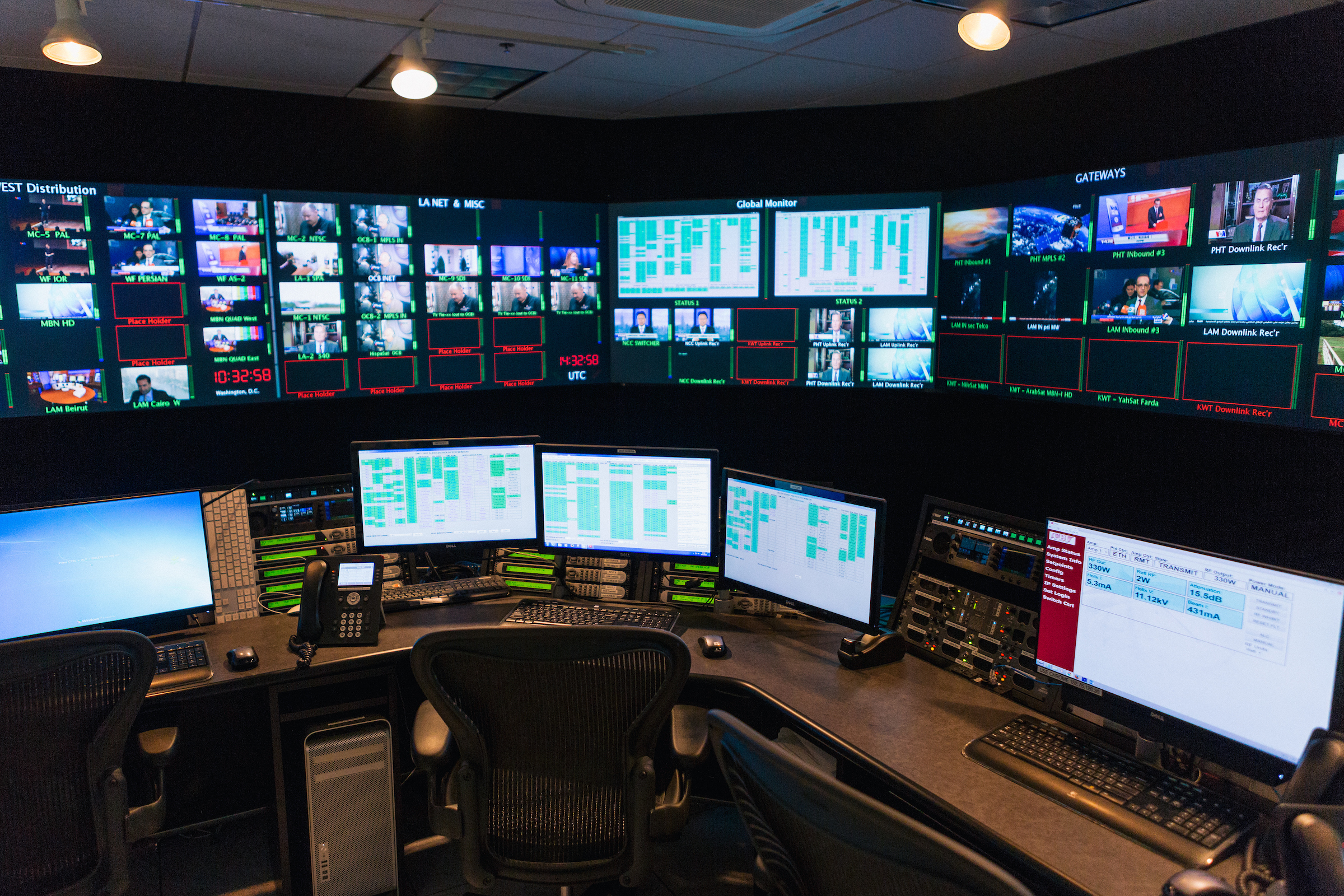TSI’s Network Control Center is the nexus through which nearly all BBG content reaches audiences, exiting the Cohen Building via satellite or terrestrial circuit.  Distributing over 1600 hours of audio programming and 328 hours of video programming per day.